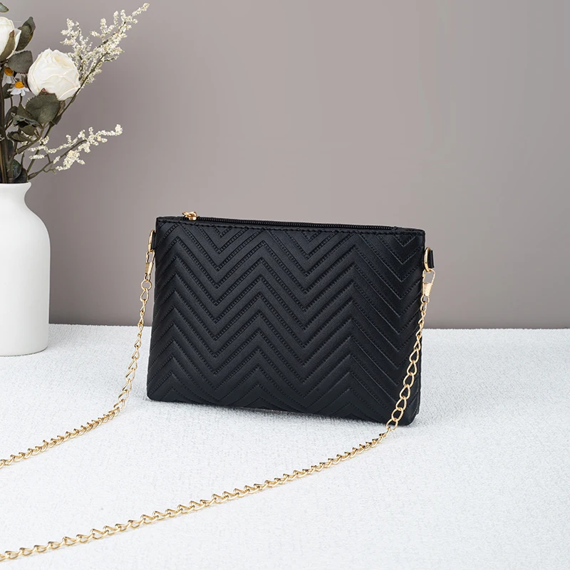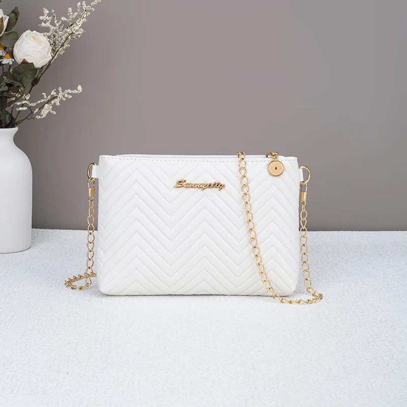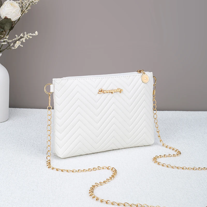 حقيبة يد نسائية جديدة بتصميم بسيط، مزينة بسلسلة مخططة، حقيبة كروسبودي متعددة الاستخدامات